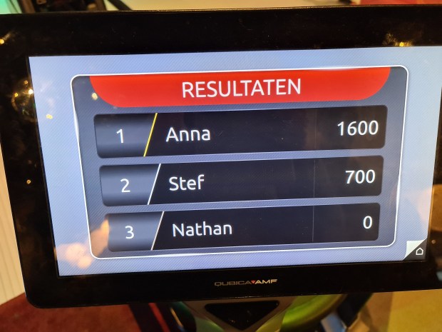 Throughout the night I was having a bit of a rough time because I wasn’t preforming that well and a part of me kind of gave up half way. It just felt that the boys were way ahead and I wasn’t able to catch up. Didn’t even get a strike which mad me kinda sad, but at least the boys had fun which is more important for me and I did win a game although it wasn’t a normal one. There was one round where Nathan got 9 point seven times in a row, which was funny and frustrating to watch.