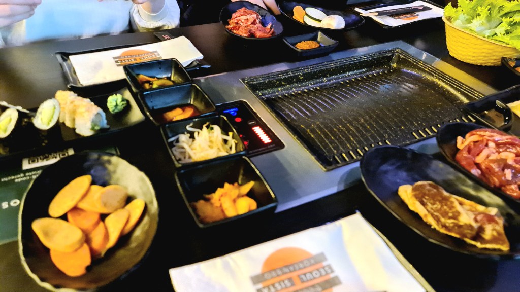 Upon arrival, I met up with my first friend Jo. She gave me a really nice greeting and we got to know each other while we headed towards the place we were going to eat. We had booked a table at this Korean bbq restaurant, which was a part of the karaoke place. It was my first time trying out Korean bbq, but it was really good. It reminded me a bit of Raclett that you can do at home.